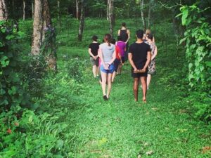 Promenades dans les plantations et les rizières, cueillette de fruits et légumes de saison, récolte du caoutchouc ou du riz, démonstrations culinaires, méditation et conférences sur le yoga, la philosophie ayurvédique, la pleine conscience et les habitudes quotidiennes.