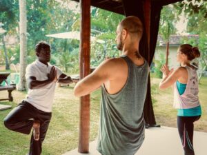 - Des vêtements ayurvédiques et un tapis de yoga séparés sont fournis.
